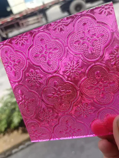 Home » Products » Patterned Glass » 4mm-10mm Blue Yellow Green Red Pink Grey Brown Stained Patterned Glass